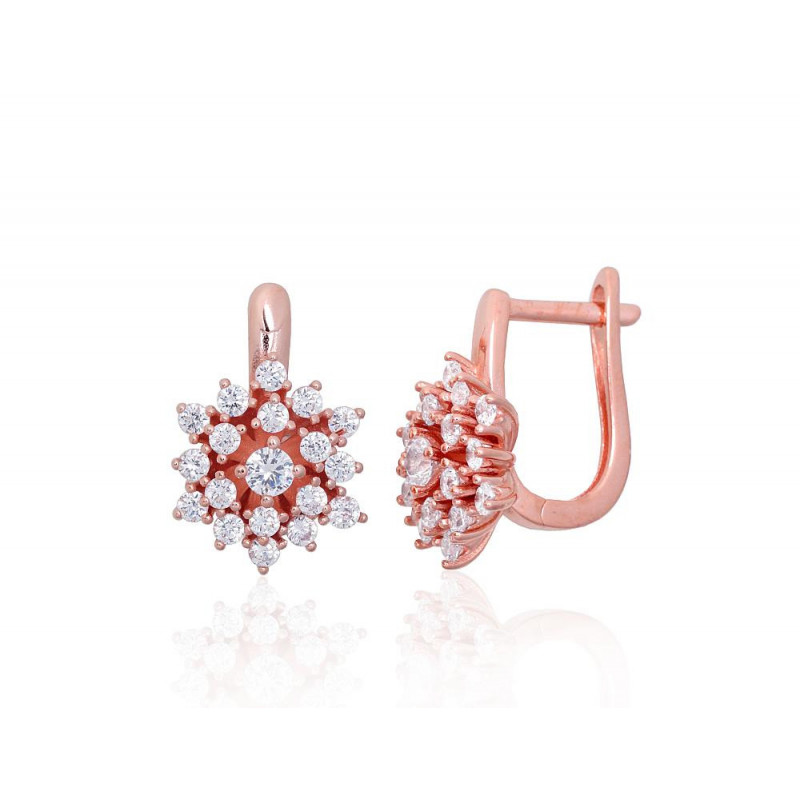 Sudraba auskari ar 'angļu' slēdzēju 2203849(PAu-R)_CZ, Sudrabs 925°, sarkanais zelts (pārklājums), Cirkoni