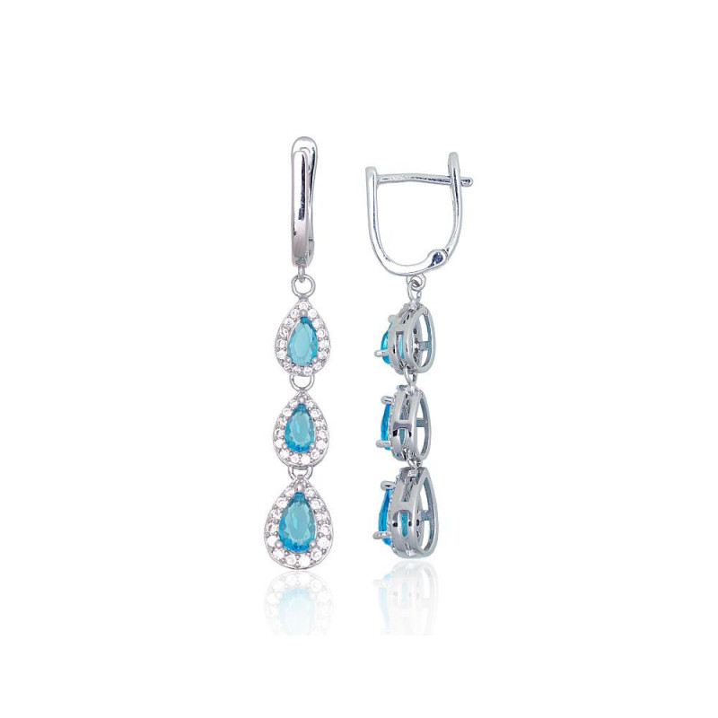 Sudraba auskari ar 'angļu' slēdzēju 2203854(PRh-Gr)_CZ+CZ-AQ, Sudrabs 925°, rodijs (pārklājums), Cirkoni
