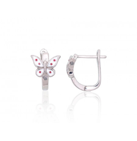 Sudraba auskari ar 'angļu' slēdzēju 2204094(PRh-Gr)_ML-W+ML-R, Sudrabs 925°, rodijs (pārklājums), Juvelieru emalja