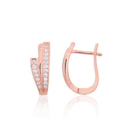 Sudraba auskari ar 'angļu' slēdzēju 2204128(PAu-R)_CZ, Sudrabs 925°, sarkanais zelts (pārklājums), Cirkoni