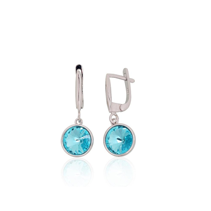 Sudraba auskari ar 'angļu' slēdzēju 2204275(PRh-Gr)_SV-AQ, Sudrabs 925°, rodijs (pārklājums), Kristāli