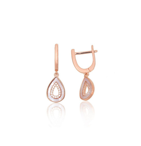 Sudraba auskari ar 'angļu' slēdzēju 2204313(PAu-R)_CZ+PL, Sudrabs 925°, sarkanais zelts (pārklājums), Cirkoni ,