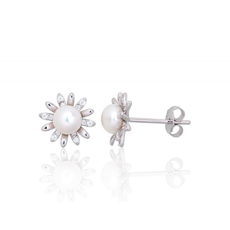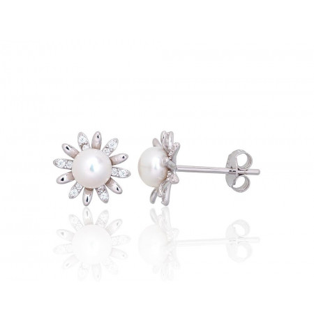 Sudraba auskari-puseti 2203837(PRh-Gr)_CZ+PE, Sudrabs 925°, rodijs (pārklājums), Cirkoni , Pērles