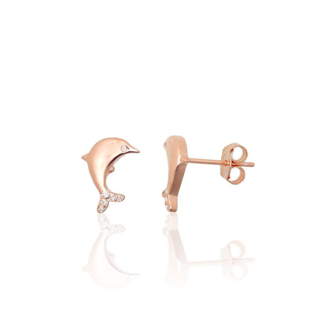 Sudraba auskari-puseti 2204293(PAu-R)_CZ, Sudrabs 925°, sarkanais zelts (pārklājums), Cirkoni