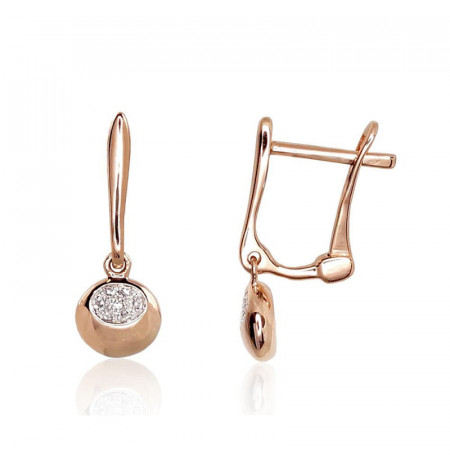Zelta auskari ar 'angļu' slēdzēju 1200973(Au-R+PRh-W)_DI, Sarkanais Zelts 585°, rodijs (pārklājums) , Briljanti